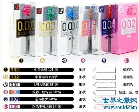 世界最薄避孕套:名流至薄002 、奥妮零距超薄001、大象003 、杰士邦ZERO零感、杜蕾斯AIR、冈本003、尚牌至薄003、冈本002、冈本001、赤尾zioxx