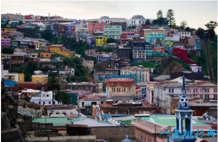 瓦尔帕莱索市位于智利中南部,是智利第二大城市和南美太平洋沿岸最大的深水港,也是第五大区(帕莱索地区)的首府和瓦尔帕莱索省省会、智利最大的对外贸易港,瓦尔帕莱索市历史悠久,由西班牙殖民者修建的,至今已有350多年的历史,城内的建筑、街道依然遗留着殖民时期的痕迹,这里每一户人家都会把他们的屋顶和墙面涂成各种各样的颜色,色彩斑斓。瓦尔帕莱索还是一座名副其实的山城,房子依山而建,层层叠叠错落有致,基于其独特的城市布局,市内有一种独具特色的通工具:缆车,当地人每天都用缆车上下山,市内有著名诗人聂鲁达故居,康赛普希翁山,文化公园等旅游景点。