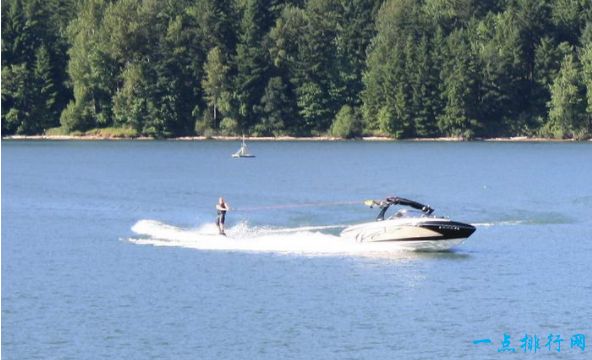 用摩托艇直接牵引运动员在水上踏橇滑行的一项水上运动。它是一个较新的运动项目,与滑水板运动有些相似,因此有人认为水橇运动是从滑水板运动演变来的。水橇比赛有障碍、跳跃和花样技巧滑等多种项目。平衡对于这次快速的体育冒险至关重要。无论是在平静的湖泊还是在海浪中,水上滑雪都是一个很棒的活动。随着微风吹过你的皮肤和水喷洒你,你会迅速冷却从热。