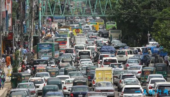 达卡是孟加拉国最大的城市,有着1600万的人口,据调查,每天大约有4万辆汽车行驶在达卡的道路上,达卡的基础设施薄弱,没有铁路,使得道路交通变得非常拥堵。