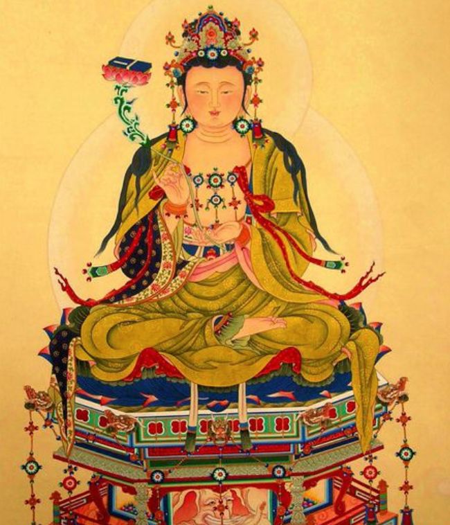 文殊菩萨,佛教梵文中为Mañjuśrī,是智慧的化身,其道场在五台山,右手持金刚宝剑(表示智能之利),能降群魔怪鬼,断一切烦恼,左手持青莲花,象征着智慧。坐骑是青面狮虬首仙既出现在西游记里面的狮驼岭的大哥狮子精,它还出现过一次是做了乌鸡国的国事,后来把国王丢入了井中自己做了国王。不过在孙悟空把文殊菩萨找来对付青毛狮子精的时候,文殊菩萨就只是轻轻地挥了挥手,狮子精就跟着回去了。