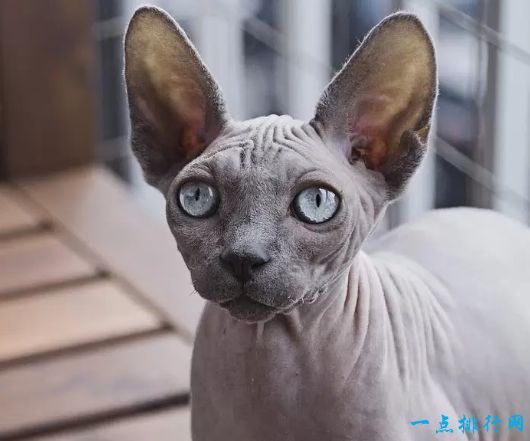 这种中等体型的猫因为没有皮毛而出名,它们的体重在6磅-12磅之间。尽管体型不大,但这个品种有一对大耳朵和一双大眼睛,他们的头是楔形的,有宽阔的胸部和中等长度的脖子。