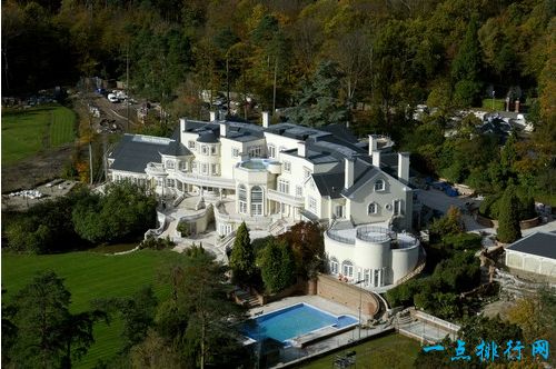 这栋房子位于伦敦市西南郊萨里郡,是加州风格的住宅,它建于58英亩的土地上,拥有103个房间,拥有所有豪华设施,从游泳池到保龄球馆应有尽有,在2005年是世界上最昂贵的私人住宅。