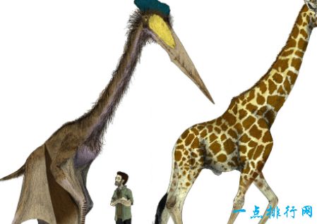 是目前已知最大的飞行动物,生活在白垩纪晚期的风神翼龙,并且长有羽毛,曾经是天空的王者,却没有牙齿,有一个尖喙。据说,四足站立,还能飞向天空。在今天的动物中没有明确的关系,类似鹤或鹳的外表。