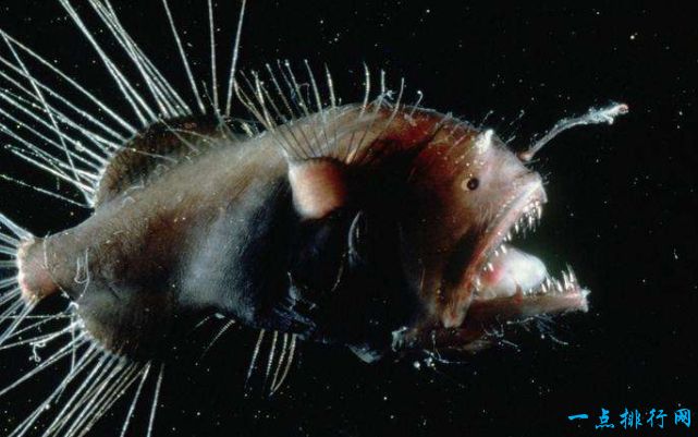 琵琶鱼排第二,不仅仅是因为它独特的外形,还有它密密麻麻的锋利牙齿。专家说:“当它们去寻找猎物的时候,它们会突出眼睛,可以360度移动,它的头部还会延伸出丝状的触角,样子非常的恐怖。”它们遍布世界各地的海洋和河流,并且是食肉的,也不排除吃人肉。