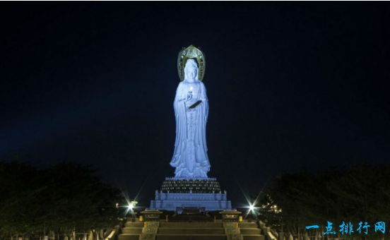 南山海上观音像位于海南省三亚市,占地面积30万平方米,高达108米。因其比自由女神还要高15米,不仅是世界最大的白衣观音造像还是世界上最大的观音像。因为工程规模宏伟、意义殊胜、佛理底蕴丰富,所以被誉为“世界级”、“世纪级”的佛事工程。
