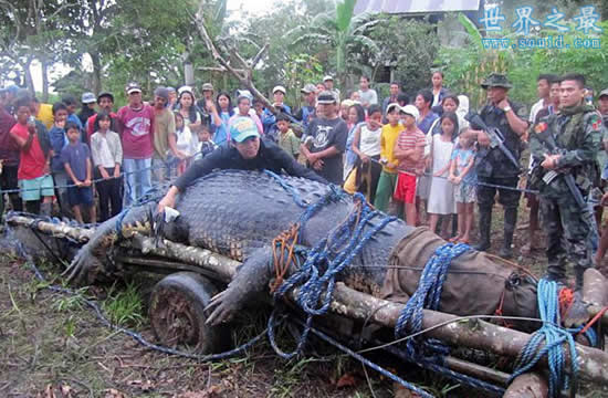 2011年9月,菲律宾捕获一条咸水鳄,这只被擒的鳄鱼体长6.4米,体重达到1075公斤,被取名为“洛龙”(Lolong)。四名男子用臂长估量它的长度。捕获鳄鱼的团队受雇于菲律宾政府的鳄鱼养殖场。自上月15起,队员们开始用鸡肉、猪肉和狗肉做诱饵抓捕鳄鱼,并最终于3日在当地30个村民的帮助下用一条8毫米粗的金属电缆在一条小溪中将这只......【查看详情】